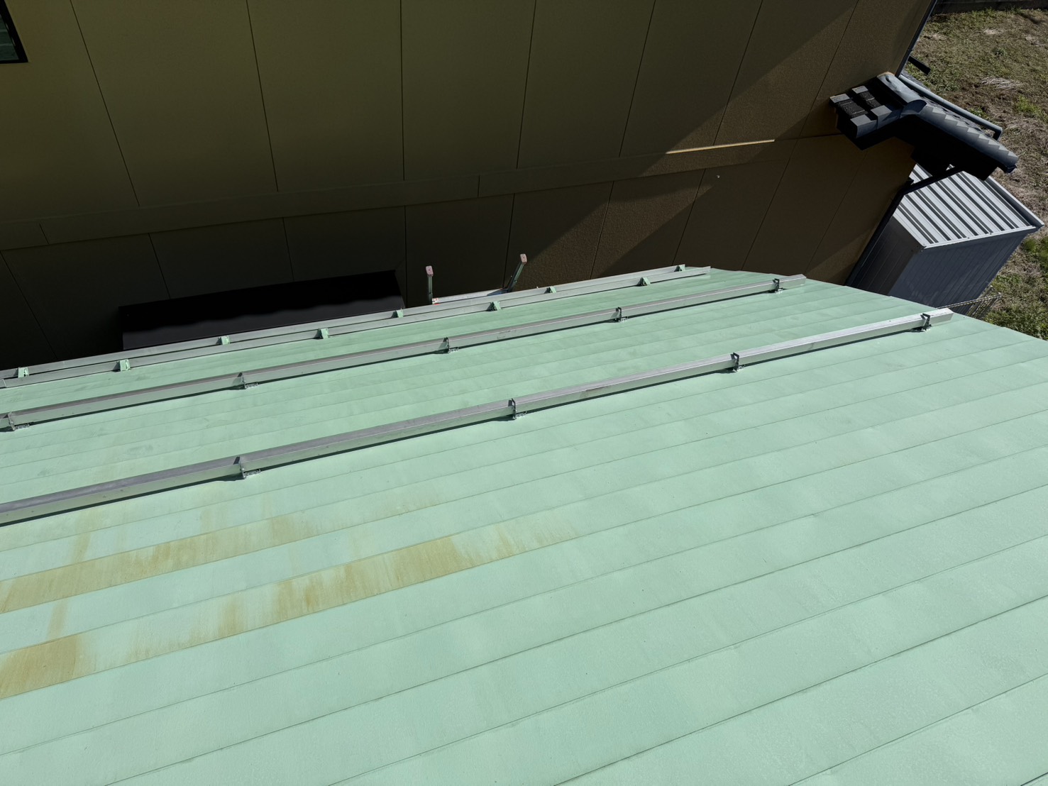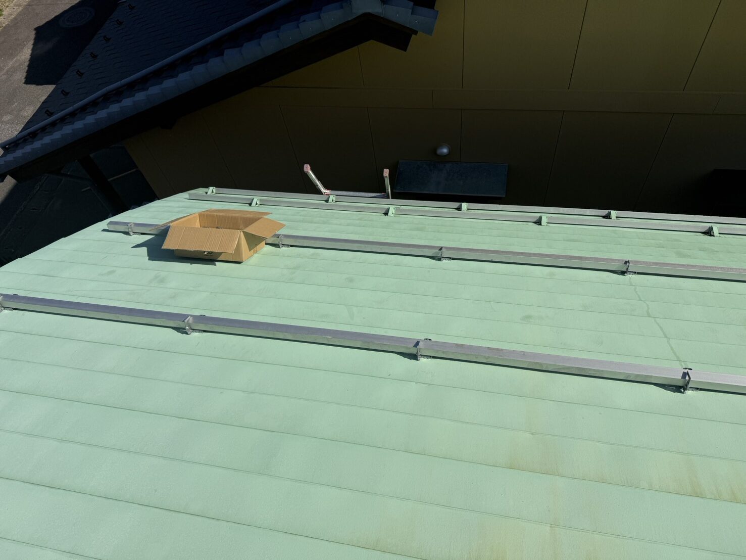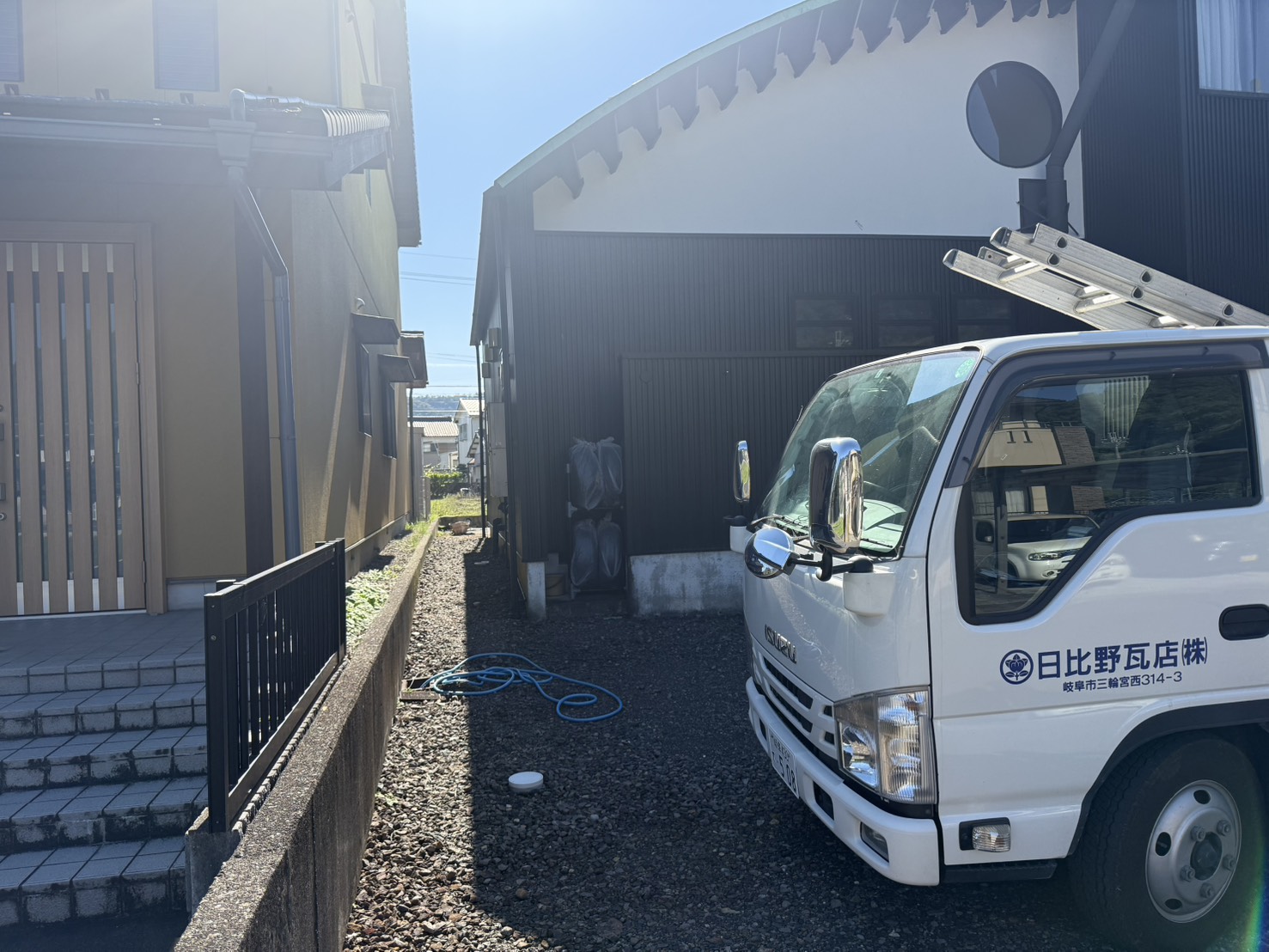 今回の工事は、岐阜市内のK様邸における雪止めアングルの増設工事でした。隣家に隣接している立地条件のため、降雪時に屋根から雪が滑り落ちて隣家に被害を与えることを防ぐための予防的な施工です。