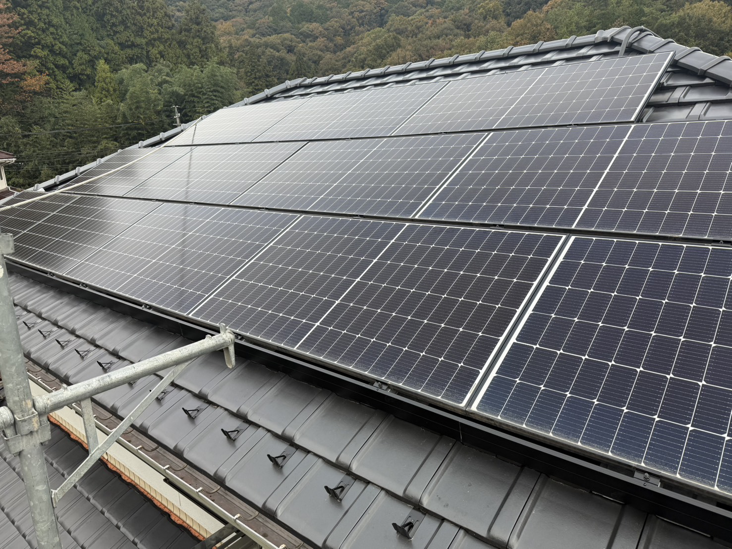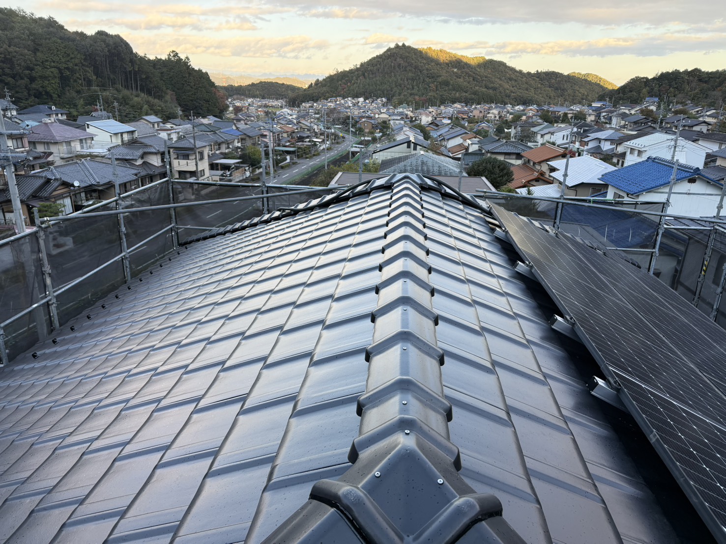 予定通り10日間の工期で工事を完了いたしました。セメント瓦から栄四郎瓦UU-44マットブラックへの葺き替えにより、屋根の耐久性向上を実現し、太陽光パネルについても下地材支持瓦への交換後に無事再設置を完了いたしました。日比野瓦店では、25年以上の豊富な経験を活かし、お客様のご要望に応じた高品質な瓦工事をご提供いたします。技術力と安全性を重視した施工で、安心してお任せいただける屋根工事を心がけております。