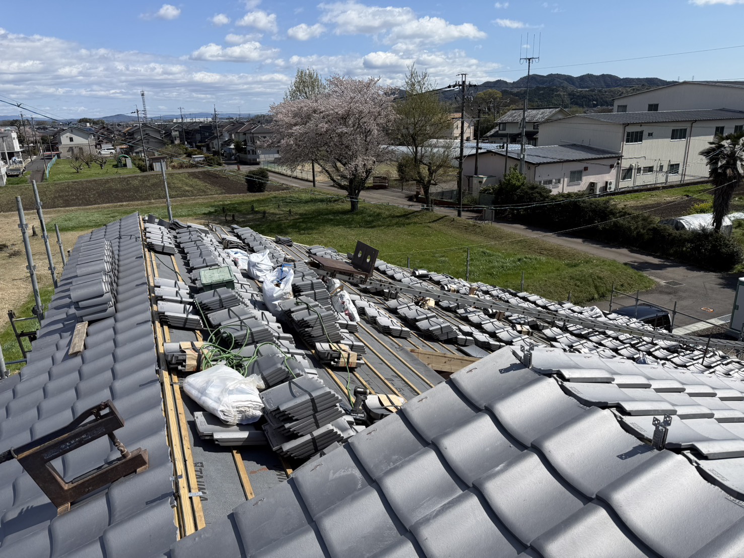 岐阜県関市にて、新築住宅の屋根瓦葺き工事を施工いたしました。栄四郎瓦のいぶし瓦を使用した本格的な和風屋根の施工事例です。