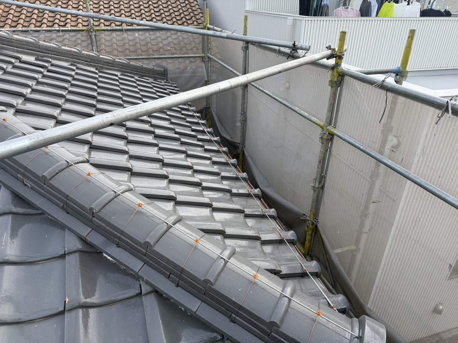 3日間の工期で棟下漆喰・番線交換・谷板交換が完了しました。棟まわりや谷部分の修繕にご不安がある方は、お気軽にお問い合わせください。